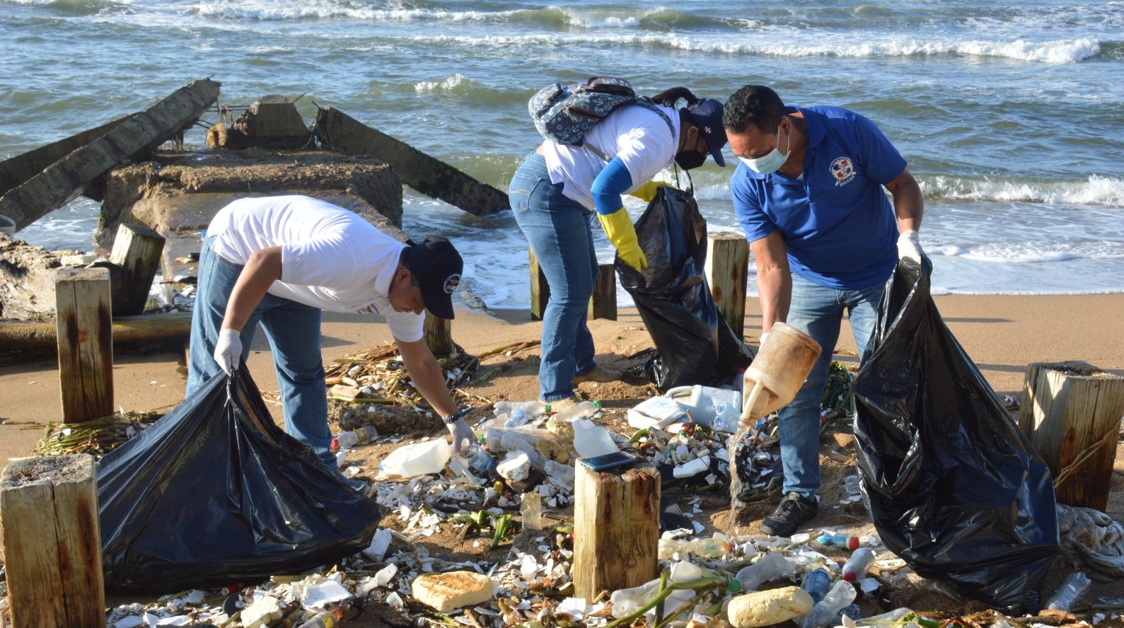 Santo Domingo: – En apoyo al proyecto de reciclaje “Protegiendo nuestro futuro” que impulsa la Asociación Dominicana de Esposas de Oficiales de las Fuerzas Armadas (ADEOFA), autoridades, cursantes y el personal administrativo de la Escuela de Graduados de Altos Estudios Estratégicos (EGAEE) de la Universidad Nacional para la Defensa (UNADE), realizaron una jornada de recolección de desechos sólidos en la playa de Güibia, de la avenida George Washington, Distrito Nacional.