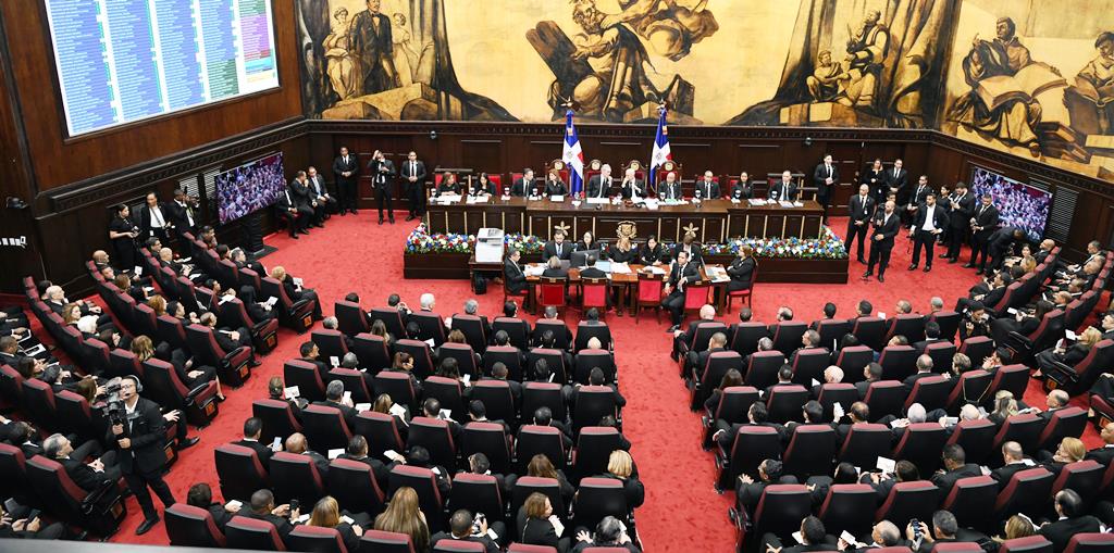 Santo Domingo: – Con la presencia del Presidente y la vicepresidente de la República, Luis Abinader y Raquel Peña, el Congreso Nacional, compuesto por los senadores y diputados, constituidos en la Asamblea Nacional, proclamó este domingo la nueva Constitución de la República Dominicana.
