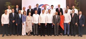 En la foto el consejo directivo de AMCHAMDR con los ministros Ito Bisonó, Roberto Álvarez, la embajadora Sonia Guzmán y presidente de la cámara de diputados, Alfredo Pacheco.