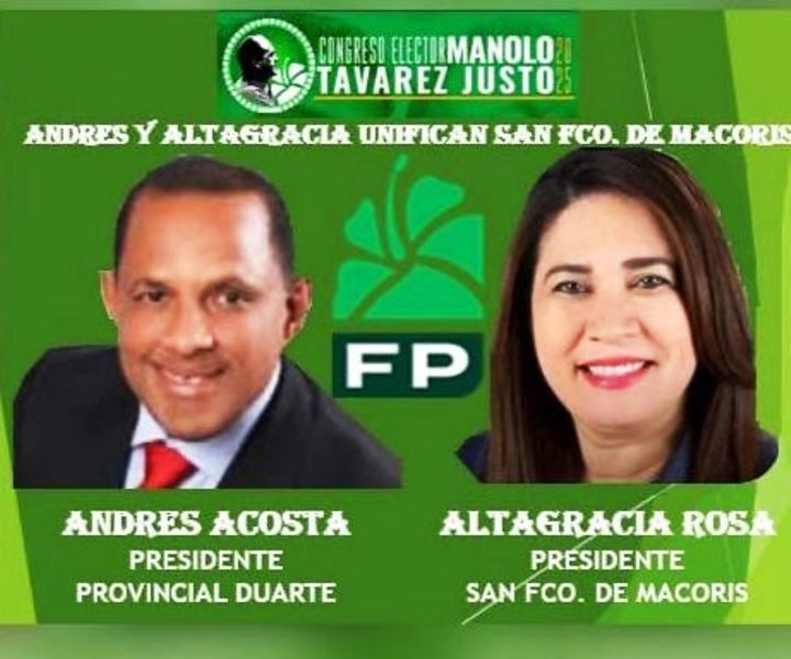 Rosa aspira a la presidencia municipal en San Francisco de Macorís, y Acosta a la presidencia provincial. Su disposición al diálogo, su capacidad de consenso y su visión de anteponer el interés colectivo sobre cualquier diferencia han sido fundamentales para presentar hoy una Fuerza del Pueblo cohesionada y fuerte en toda la provincia”, aseguró Danilo Suárez.