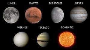 Estos cuerpos celestes son: el Sol, la Luna, Marte, Mercurio, Júpiter, Venus y Saturno. Como podrán notar, estos nombres guardan una relación estrecha con los nombres de los días de la semana.
