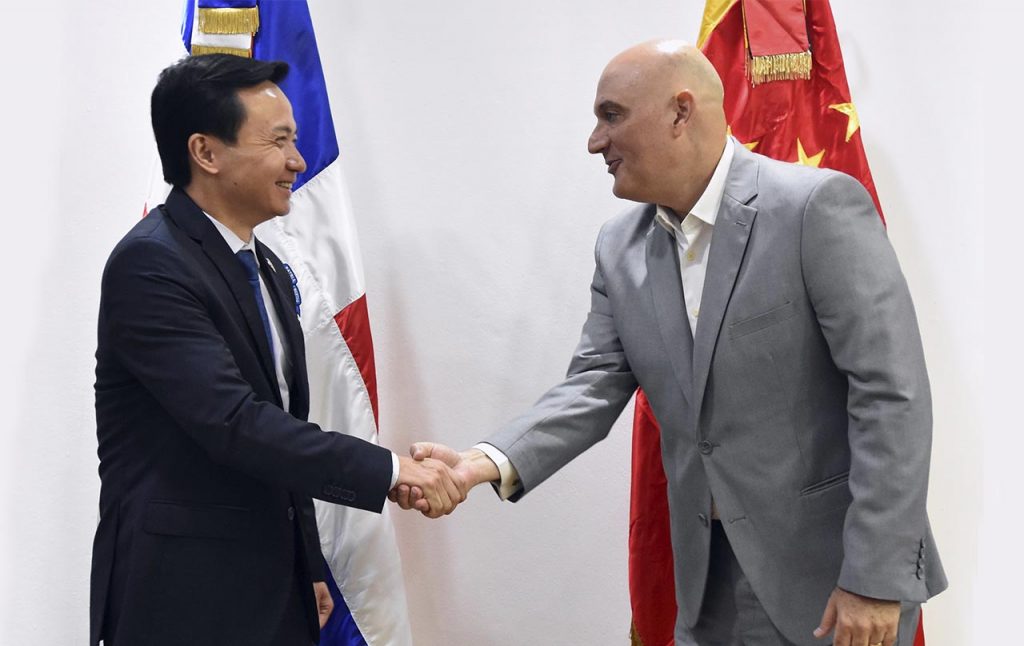 Isa Contreras y el diplomático chino conversaron sobre las posibilidades de fortalecimiento de las relaciones comerciales y la cooperación internacional entre la República Popular China y la República Dominicana.