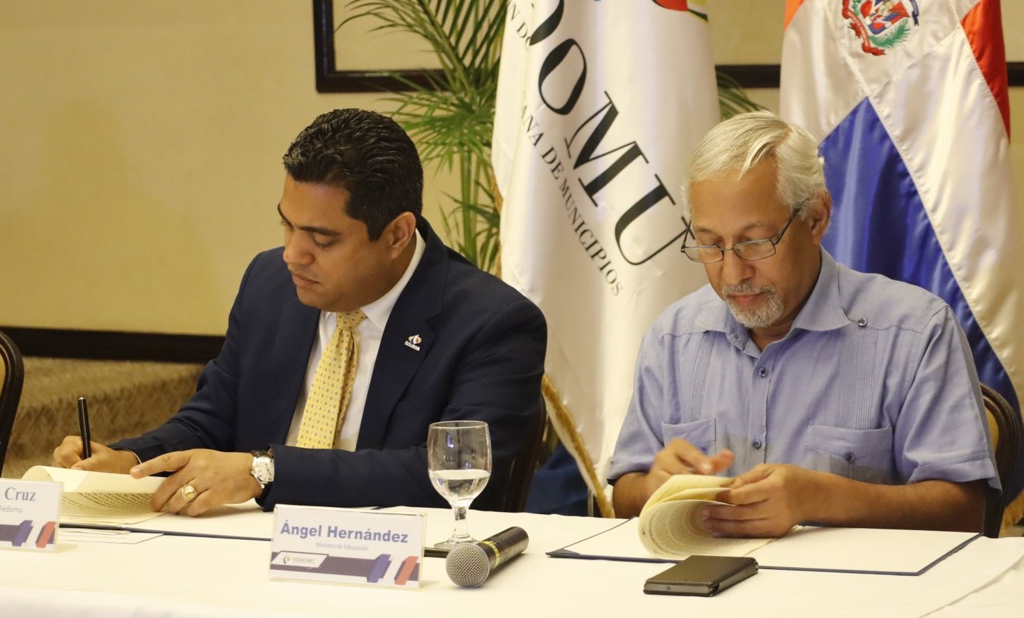 El acuerdo, que fue suscrito por Kelvin Cruz, presidente de Fedomu y alcalde de La Vega, y el ministro Ángel Hernández, también permitirá elaborar un diagnóstico a nivel nacional sobre la cantidad, composición y distribución en el territorio de cada municipio de los residuos sólidos que se generan en el sector educativo.