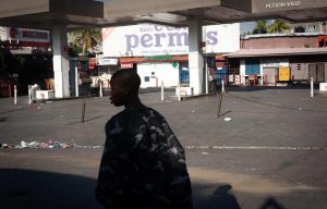 En la fotografía se observa una estación de combustibles que permanece cerrada, en Puerto Príncipe (Haití).