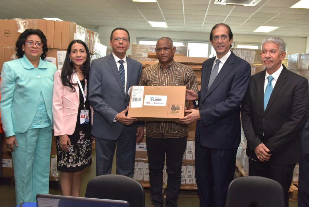 Santo Domingo:- El ministro de la Presidencia, Gustavo Montalvo, encabezó este lunes junto al ministro de Educación, Antonio Peña Mirabal, el acto de entrega de más de 25 mil computadoras a igual número de maestros y maestras a nivel nacional, en el marco del Proyecto Uno a Uno del Programa República Digital Educación.