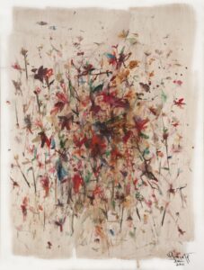 Sus formas y estructuras asimétricas, en armonía con el manejo magistral del color, revelan su profunda conexión con la naturaleza, y muestran una predilección por los tonos ocres en su paleta.