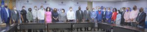Durante el acto de firma del convenio, los principales ejecutivos de la UASD y JCE estuvieron acompañados de miembros del Consejo Universitario y del Pleno, respectivamente, así como de docentes y estudiantes universitarios.