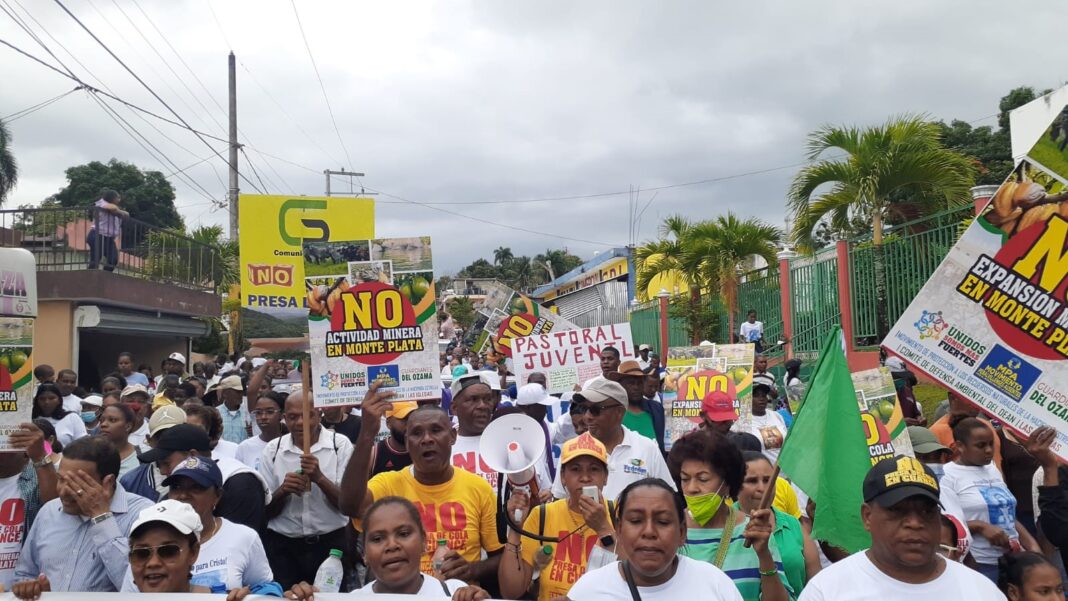 Monte Plata: – Cientos de personas de diferentes municipios de la provincia de Monte Plata marcharon en rechazo a una presa de cola que alegadamente pretende construir la minera de origen canadiense Barrick Gold, la cual afectaría el río Ozama y otras fuentes acuíferas de la demarcación.